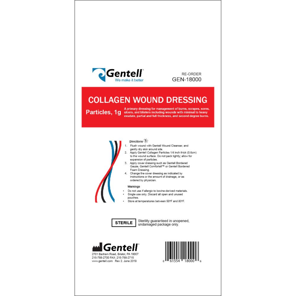 Gentell Collagen Particles is a main dressing used to treat burns, scrapes, sores, ulcers, and blisters, as well as partial and full-thickness wounds with minimal to high exudate.