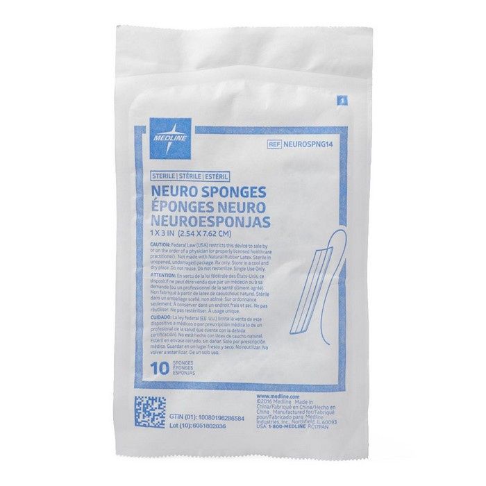 Medline X-ray Detectable Neuro Sponge Pattie is flexible to conform to body contours. It features strings to increase visibility. It has high-quality fibers that reduce linting. Its counting card included assisting with counting protocol.
