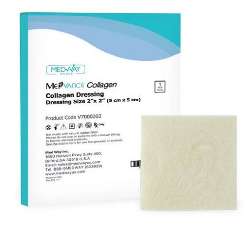 MedVance Triple Helical Collagen Sheet absorbs at least 40% of its own weight in exudate. It is easily absorbed into the wound and has a naturally low PH. Contains no additives or fillers.